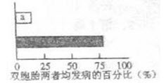 下图是对某种遗传病在双胞胎中共同发病率的调查结果。a、b分别代表异卵双胞胎和同卵双胞胎中两者均发病的百分比。据图判断下列叙述中错误的是()