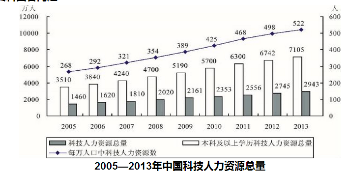2006—2013年间,有几年的科技人力资源总量较前一年增长超过500万人( ) 2。 3。 4。 5。