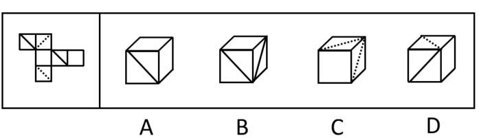 左边给定的是纸盒的外表面,下面哪一项能由它折叠而成: