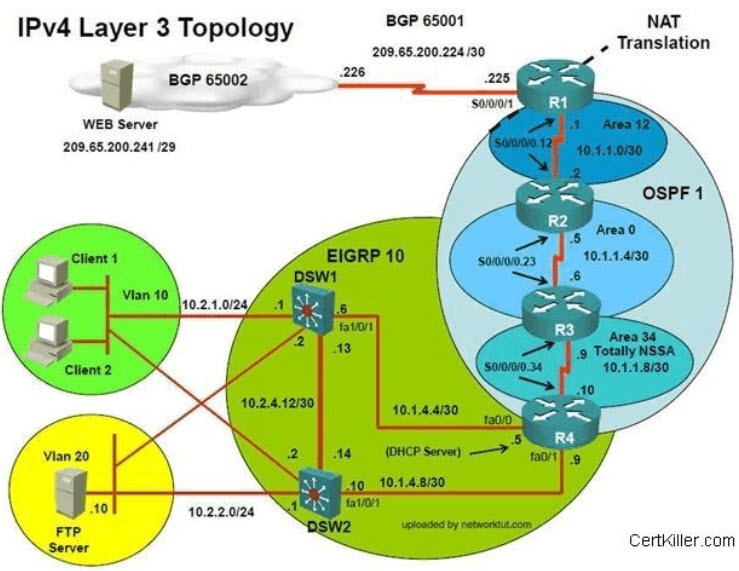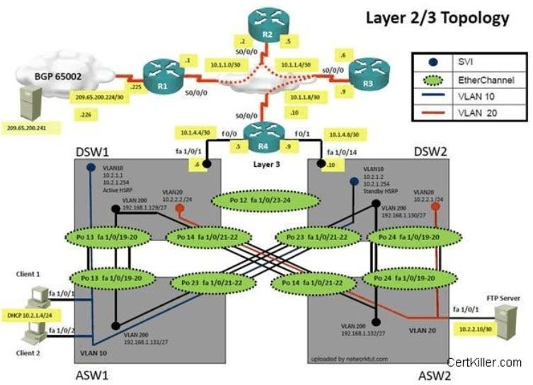 Client 1 is not able to reach the WebServer at 209.65.200.241. Initial troubleshooting shows that R1 isalso not able to reach the WebServer. R1 also does not have any active BGP neighbor.