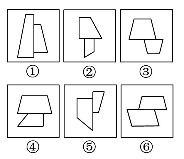 把下面的六个图形分成两类。使每一类图形都有各自的共同特征或规律。分类正确的一项是: