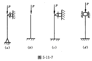 如图5-11-7所示直杆,其材料相同,截面和长度相同,支承方式不同,在轴向压力作用下,哪个柔度最大,哪个柔度最小?有四种答案:()