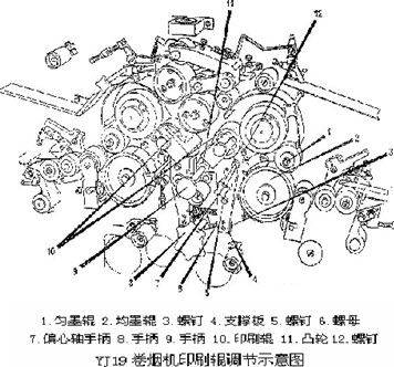 根据示图,简述YJ19卷烟机打印辊相对钢印辊的调整步骤及方法。