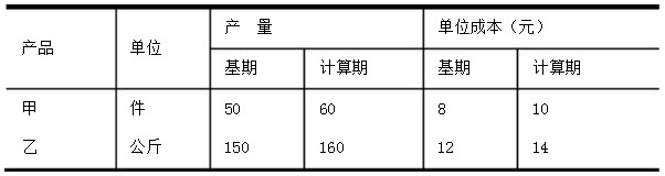 计算两种产品单位成本总指数及由于单位成本影响总成本的绝对额。