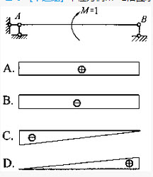 单位力偶M=1沿图示梁AB移动,设反力RA向上为正,其影响线形状应为:()