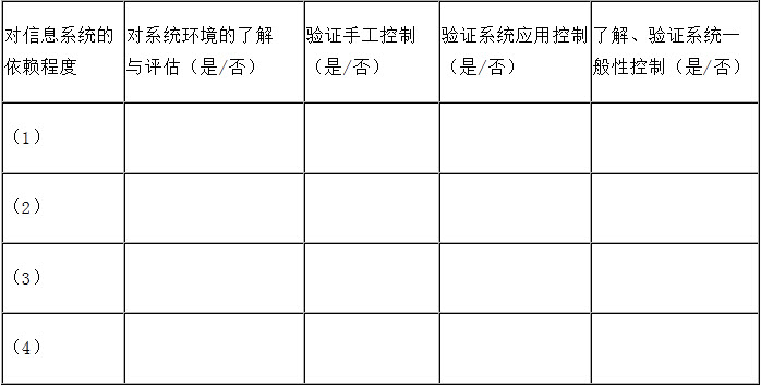 在信息技术环境下,注册会计师的审计工作与对系统的依赖程度是直接关联的,请根据注册会计师以下四种对信息系统的依赖程度情形,完成下表。